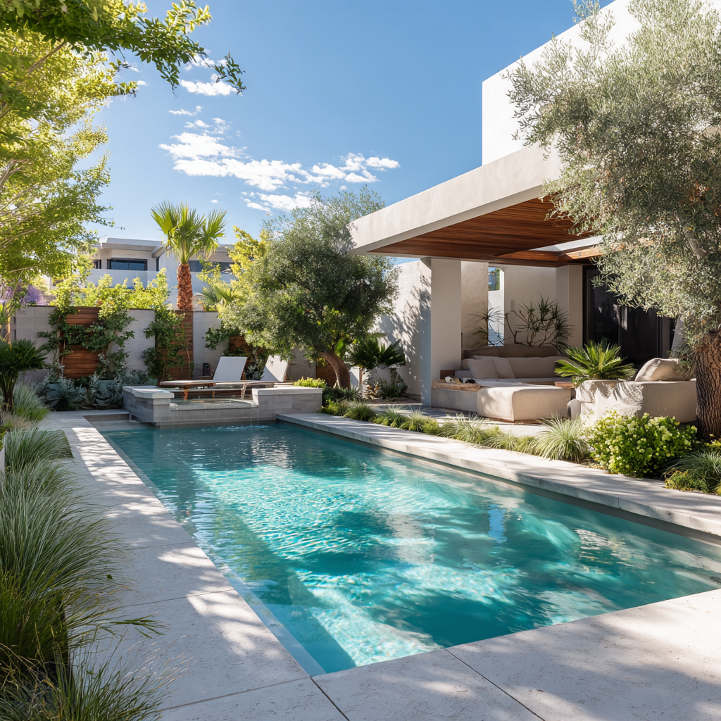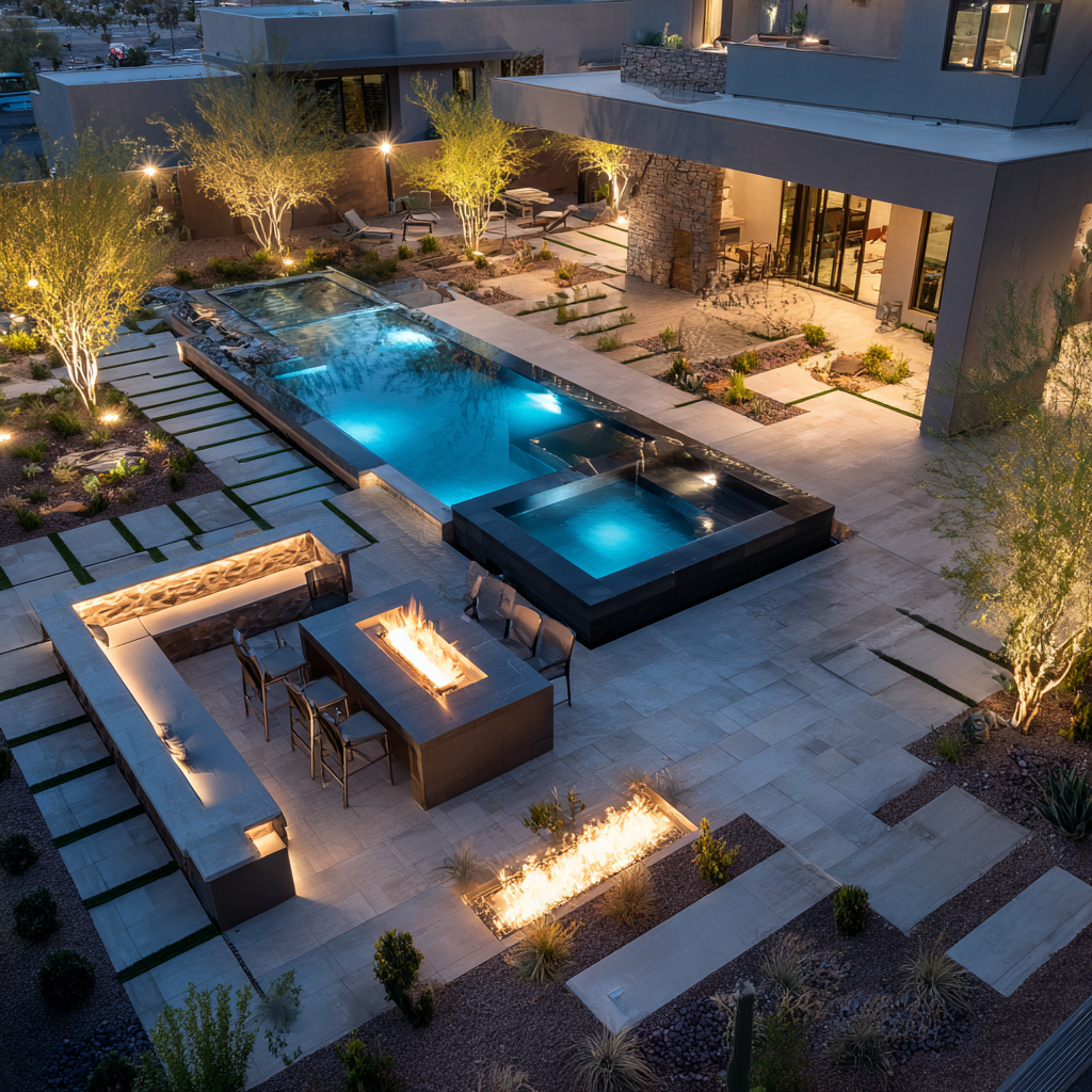 Water-Efficient Landscape Design drought-tolerant, desert-adapted, and native plant landscapes Smart Irrigation Systems drip irrigation, conversions, and weather-based smart controllers Hydrozoning & Turf Reduction grouping plants by water needs and minimizing turf areas Soil & Mulch Management improving soil health and water retention Sustainable Hardscapes pavers, permeable surfaces, and low-water outdoor living spaces Luxury Outdoor Living high-end backyard design with water-smart features (patios, kitchens, spas, and pools designed for efficiency) Stormwater Management water harvesting, infiltration, and erosion control strategies Seasonal Water Management irrigation audits, water budgeting, and efficiency reports Client Education & Compliance guidance on SNWA water-smart guidelines and seasonal watering schedules