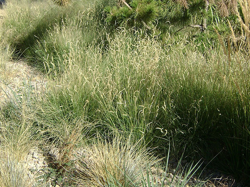 Small ornamental bunch grass with delicate gray-green to blue-green foliage. Decorative cream to purple-red flowerheads stand above the foliage, turning into golden-tan seedheads. Foliage turns tan in the winter. Seeds attract birds. May reseed in the landscape. Cut down to 2-3 inches from the ground in late winter to allow fresh growth. Good choice for borders, rock gardens, or meadows.