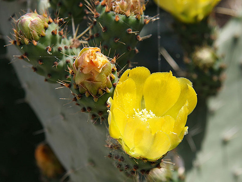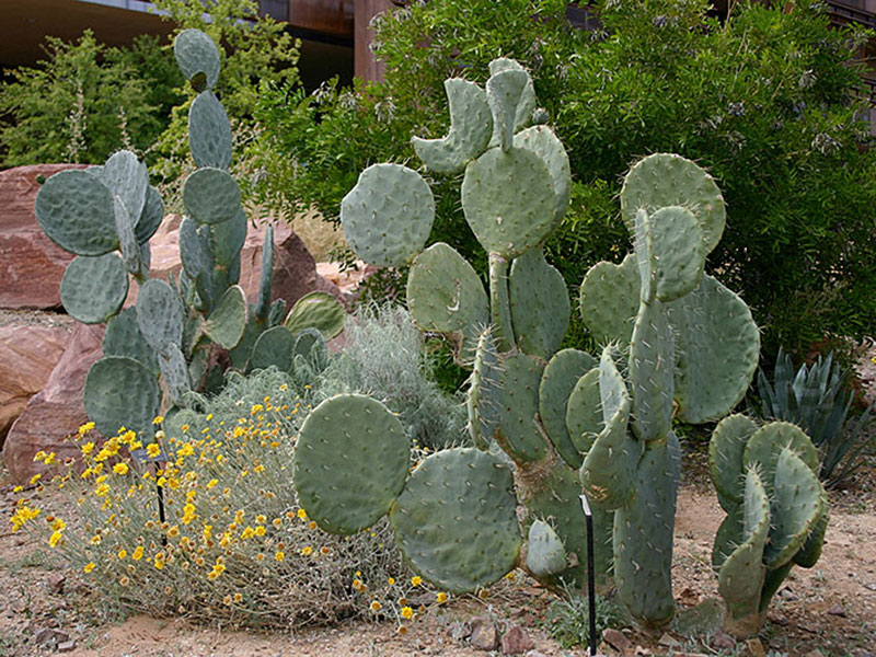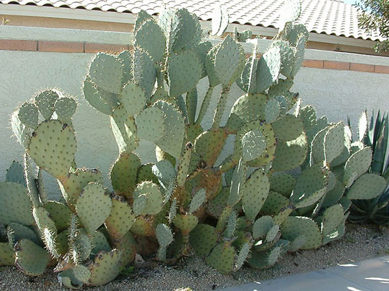 This cactus has super large dinner plate size pads, some reaching 20 inches across. It is a formidable plant so give it room to grow. Occasional trimming of select pads to keep plant balanced will prevent breakage from extra heavy areas. After a showing of large, bright yellow flowers it sets delicious, nicely colored fruit which will sit on the plant for quite some time. Both the fruit and the young pads are edible.
