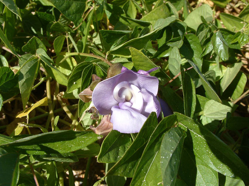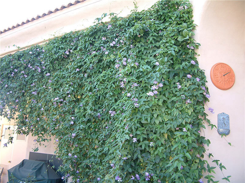 Although susceptible to being damaged by winter temperatures, this fast growing vine quickly re-establishes itself during the warmer months. Attractive dark green foliage with pale purple flowers who's shape resembles a snail.