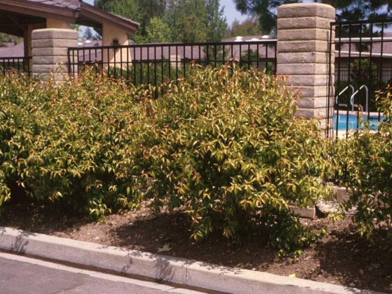 Broadleaf evergreen. Shrub or can be trained into a small tree. Often used for hedges. Leaves start out glossy with bright green to bronze color and red margins. Mature to a slightly glossy medium green to yellow-green with pale veining. Salt sensitive and will get leaf tip necrosis in alkaline soils. May become chlorotic in heavily alkaline or poorly drained soils. Somewhat susceptible to Texas Root Rot.